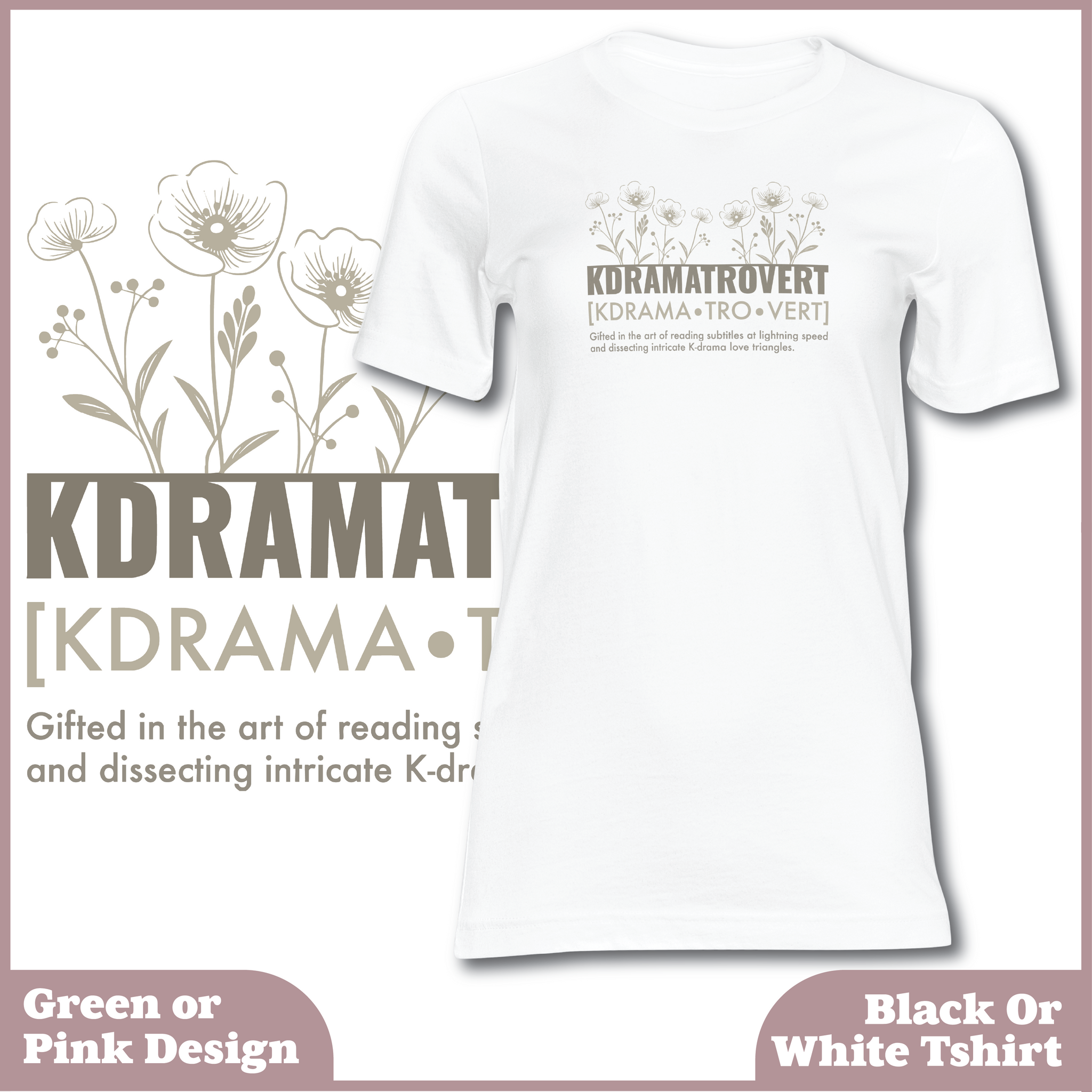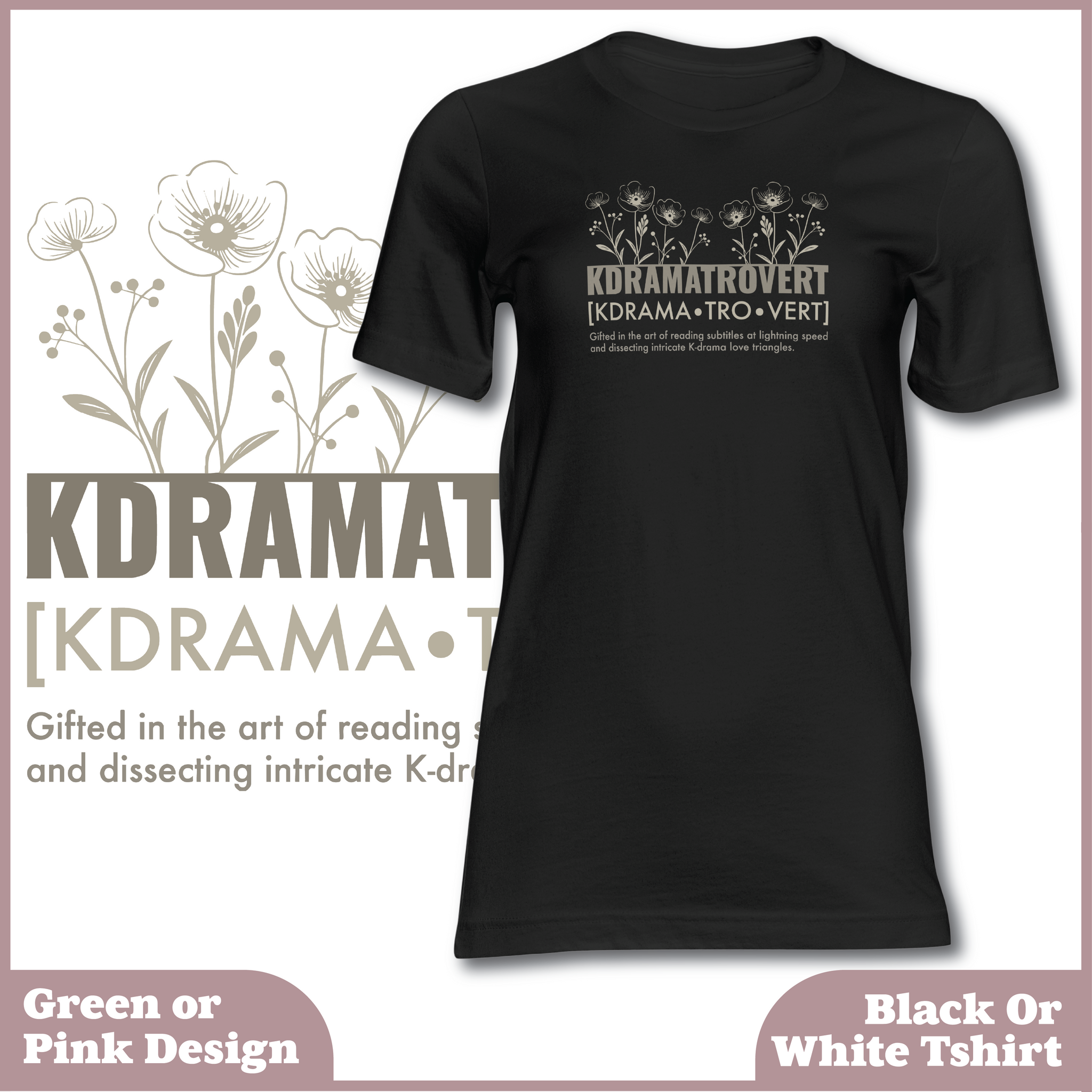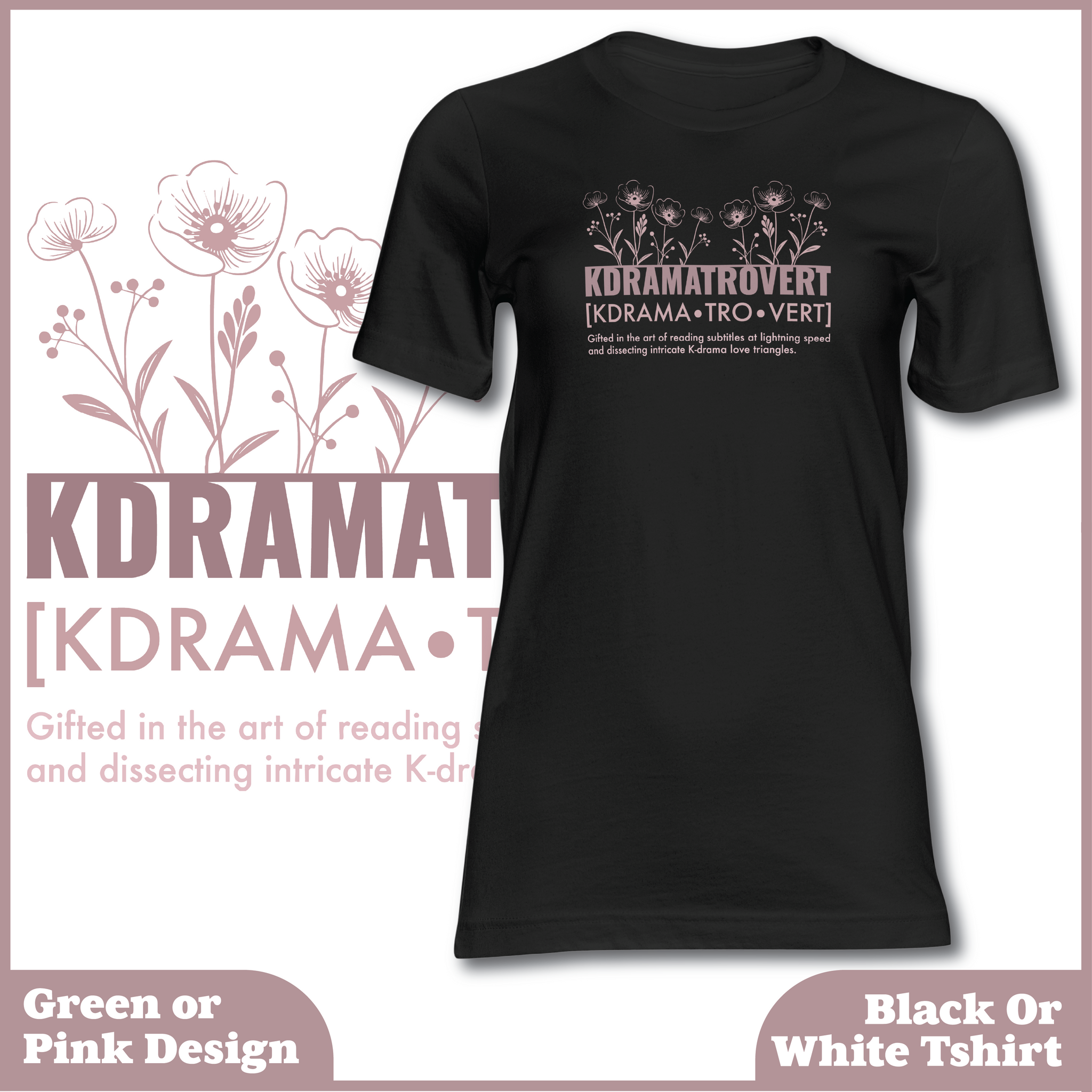 This soft, comfy tee features an elegant floral design with the witty definition of “KDRAMATROVERT” — because yes, being gifted in the art of binge-watching emotional rollercoasters is a talent.